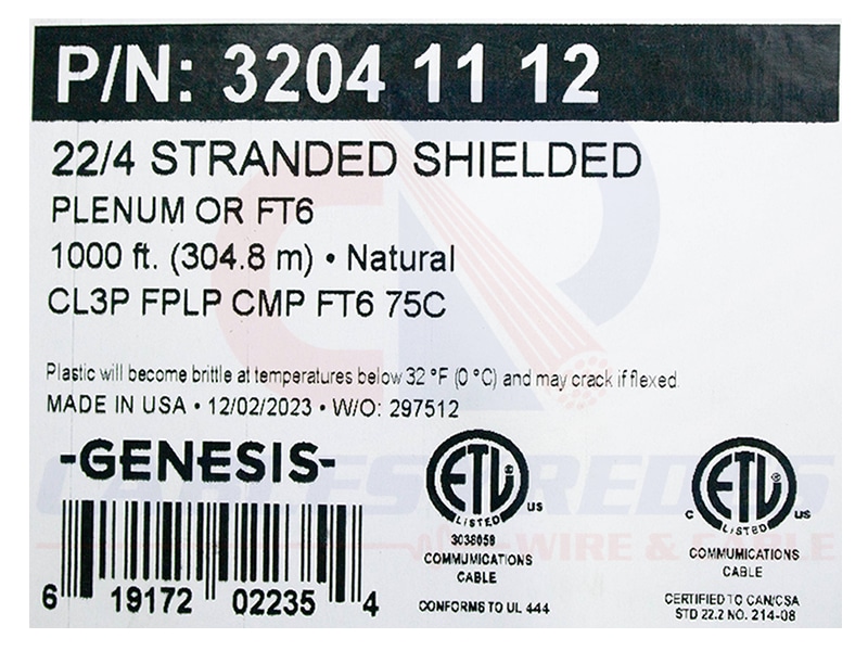 GEN-32041112 Genesis Security/Alarm Shielded 4Cond 22AWG CMP/Cl3P
