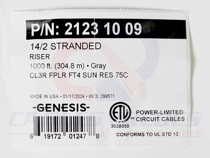 GEN-21231009 Genesis Security/Alarm Unshielded 2Cond 14AWG CMR/Cl3R