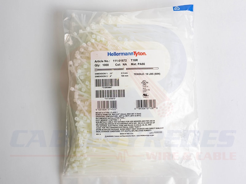 HTN-T18R9M4 Hellermanntyton Cintillo 4.0″ X 0.10″ Natural Pk/1000 Pzs.