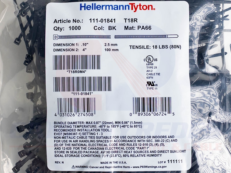 HTN-T18R0M4 Hellermanntyton Cintillo 4.0″ X 0.10″ Negro Pk/1000 Pzs.