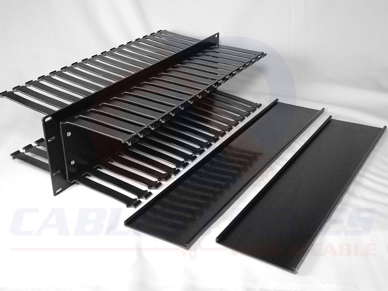 Diseñado para proporcionar gestión de cables horizontalmente en la parte delantera y trasera de un rack, la serie WMB negra incluye varias variaciones y tamaños.
