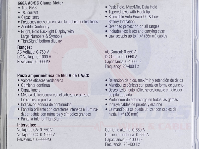 IDEAL-61-765 Ideal Amperimetro De Gancho Tight-Sight, 660A AC/DC W/Trms