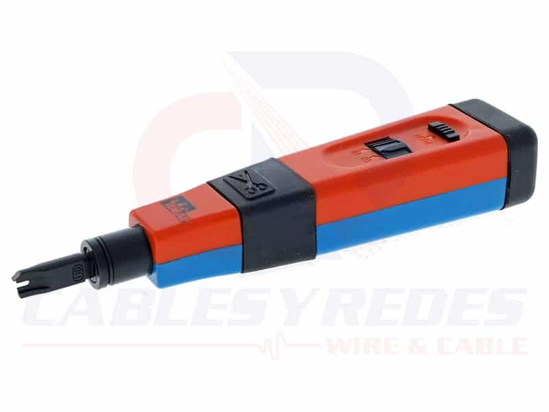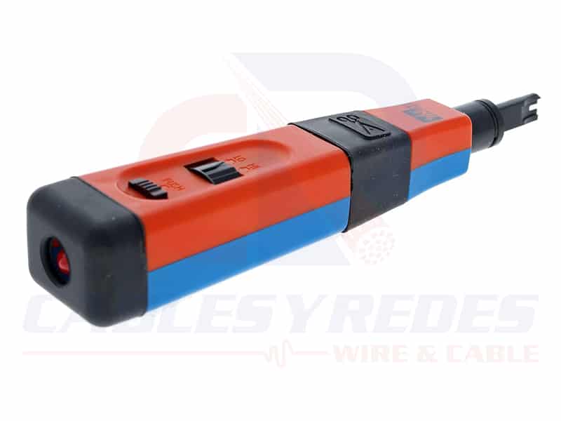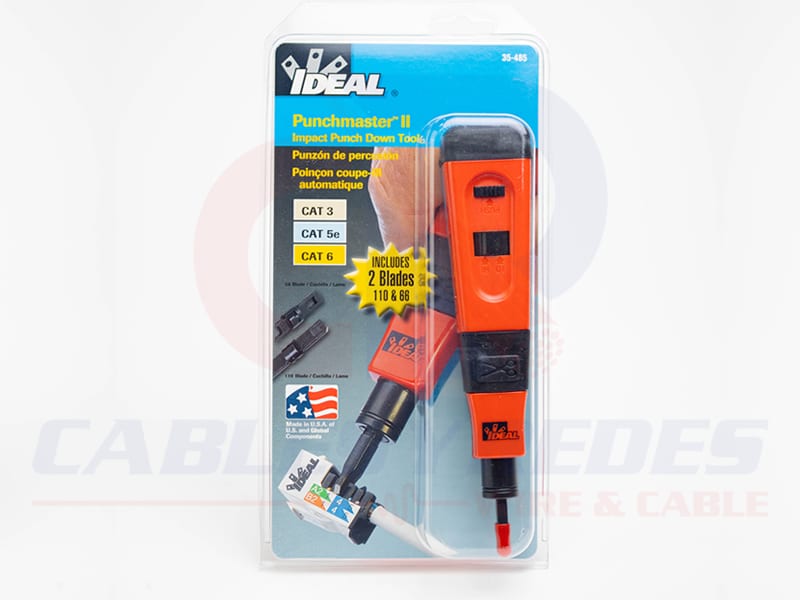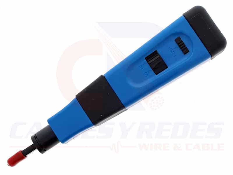 La herramienta Punchmaster™ II Punchdown es una herramienta de nivel profesional que se utiliza para terminar conductores de voz y datos a equipos de telecomunicaciones y redes relacionados. El 35-485 incluye 110 blades (redes/datos) y 66 (telecomunicaciones/voz). Otros tipos de hojas están disponibles por separado. La herramienta presenta un diseño de estilo de impacto donde un mecanismo interno cargado por resorte ayuda a aplicar una oleada de fuerza adicional para asentar y cortar conductores con menos intervención por parte del usuario. Los usuarios pueden seleccionar la configuración HI o LO en la herramienta. La configuración LO se utiliza para terminar en equipos más sensibles, como postes conectados a placas de circuito. La configuración HI ofrece más fuerza y ofrece mejores características de asiento y corte.