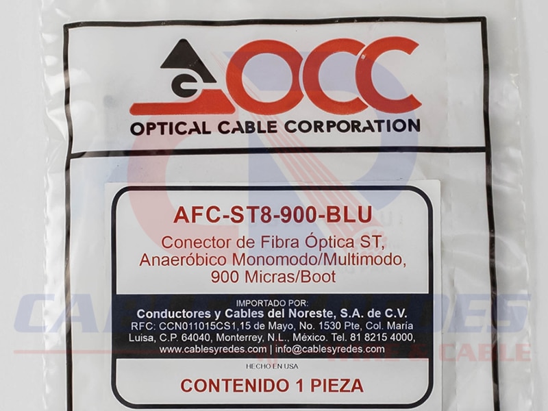OCC-AFC-ST8-900-BLU Occ Fiber Conector Fibra Optica ST Anaerobico Monomodo/Multimodo 900 Micras/Boot