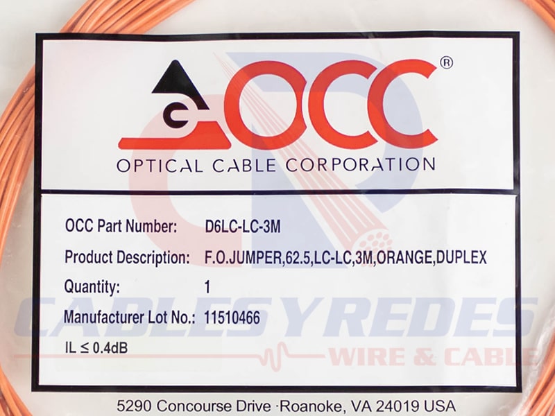 OCC-D6LC-LC-3M Occ Fiber Jumper Fibra Optica Duplex OM1 62.5/125 LC-LC3Mts.