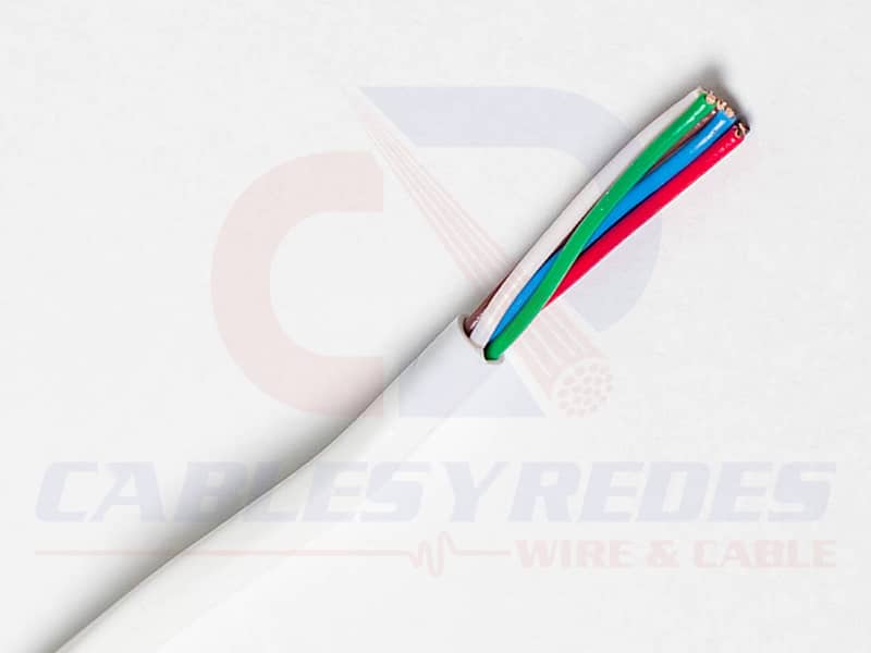 Cable formado por conductores sólidos de cobre, aislados individualmente bajo código de colores con policloruro de vinilo semirrígido (SR-PVC) y cubierta general de policloruro de vinilo retardante a la flama (FR-PVC).