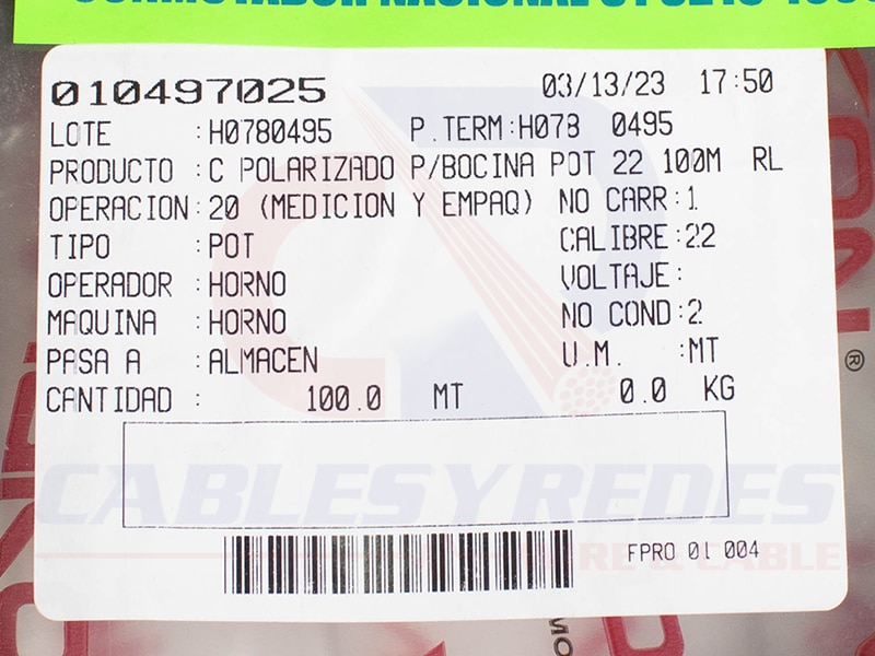 VIAK-POT-H078 Viakon Polarizado Cristal 22 AWG Rollo 100Mts.
